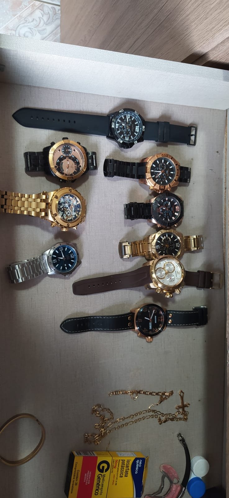 Os prejuízos à União foram calculados em montante superior a R$105 mil.  Contudo, há indicativos fortes de que o acusado atuou na intermediação de diversos outros benefícios fraudulentos, tendo em vista o grande número de requerimentos nos sistemas previdenciários vinculados a si.Relógios apreendidos na operação (Divulgação)